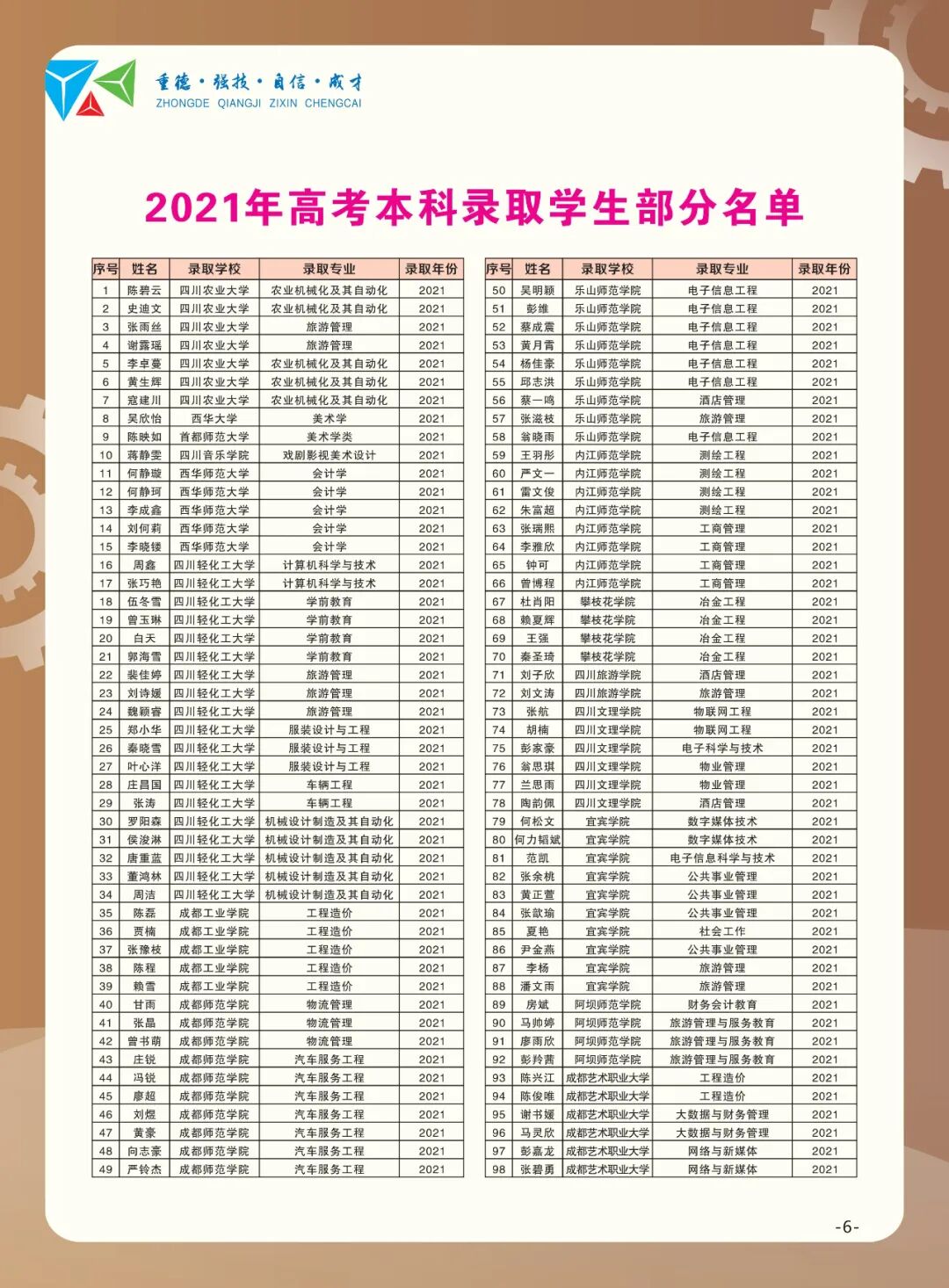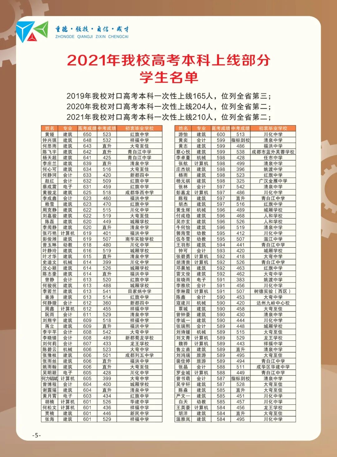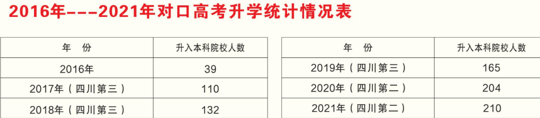 人人皆可成才,人人尽展其才,我校师生以梦为犁,不负耕耘,不负韶华,用平凡的工作书写不平凡的成绩!我校对口高考成绩屡创新高,2019年165本科上线,2020年204人本科上线,2021年210人本科上线,总人数位列居四川省中职学校前三,其中考入211重点大学的人数也稳居前列!