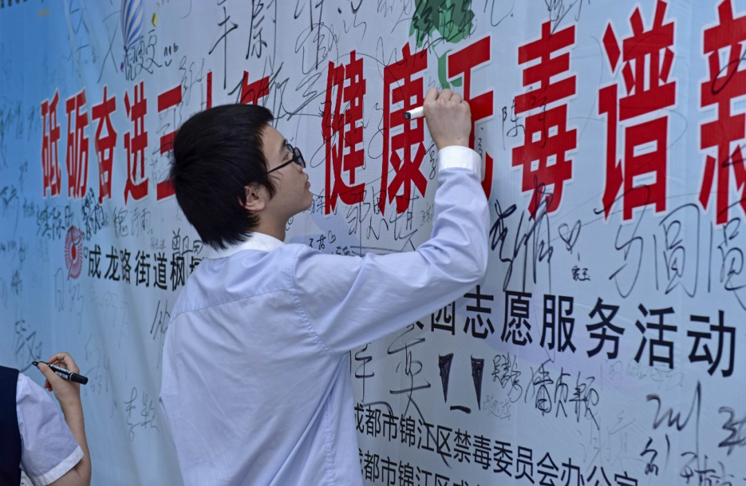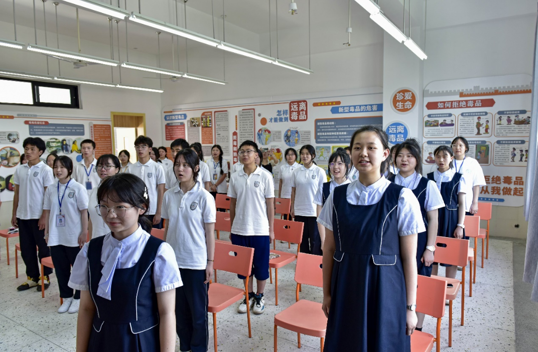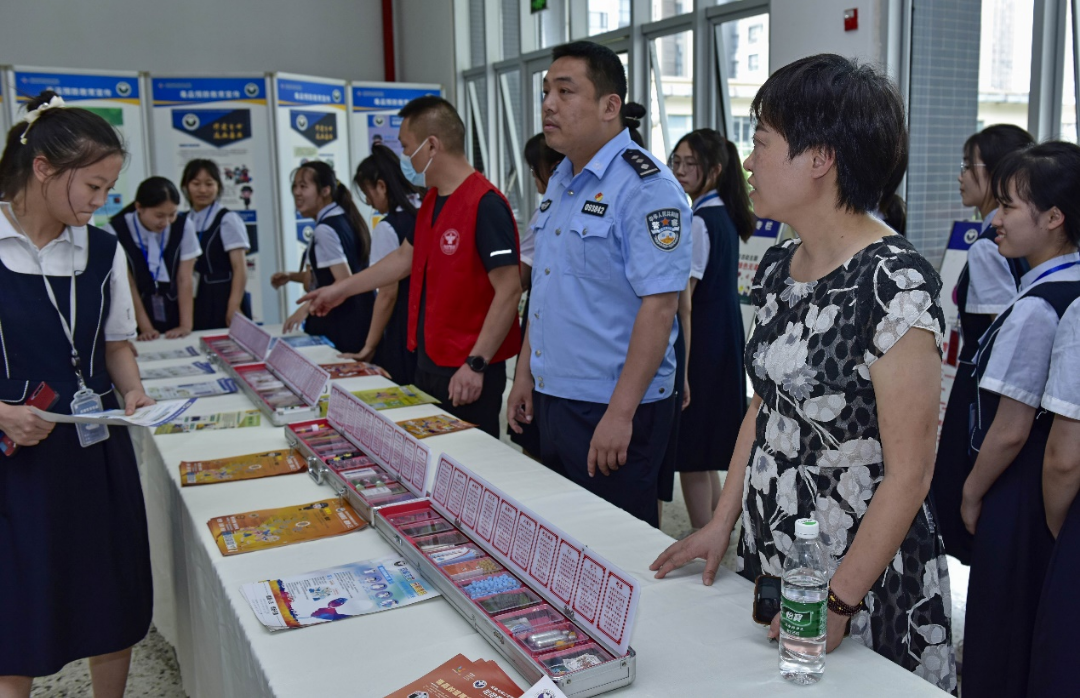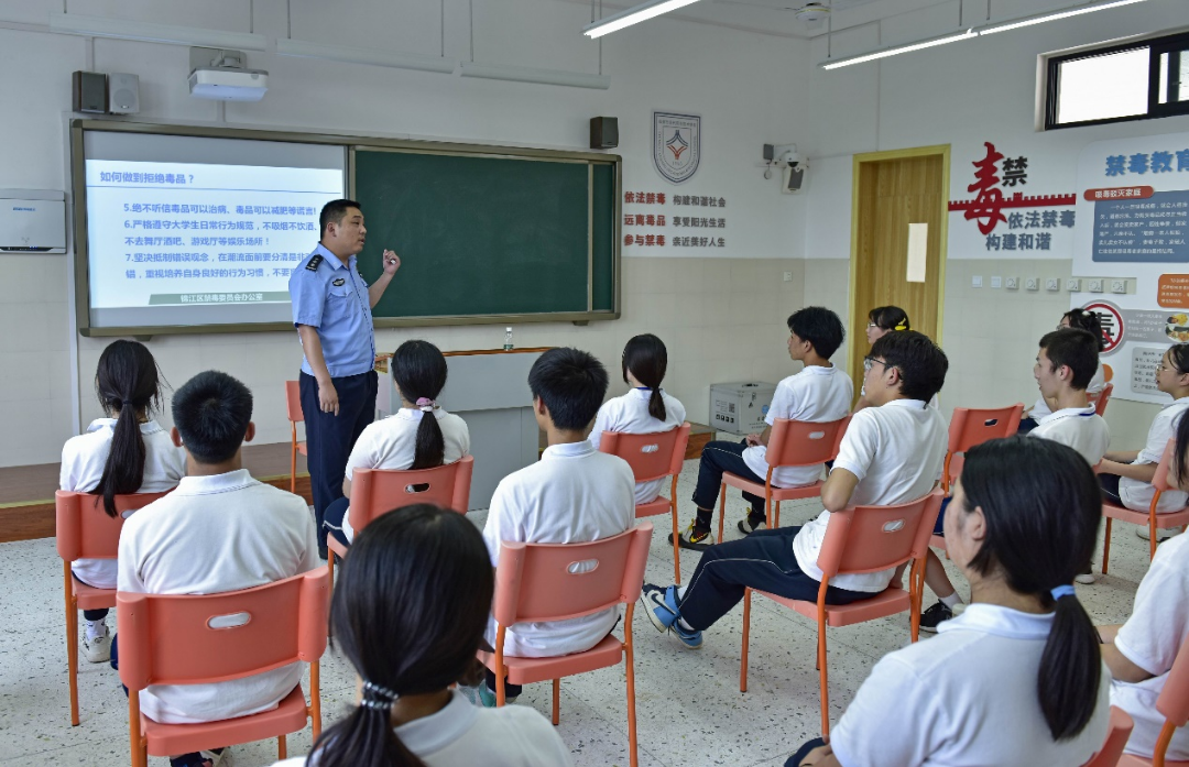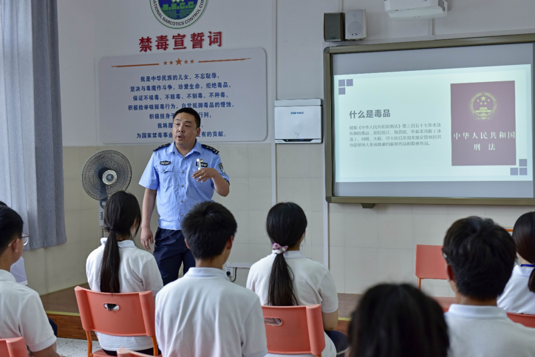 为进一步推进了青少年毒品预防教育6·27工程的深入开展,提高了在校学生识毒、防毒、拒毒的能力,使广大青少年将毒品绝不能沾的意识根植于心,将健康人生·绿色无毒的理念外化于行,6月17日下午成都市现代职业技术学校与锦江区枫树社区校社联动、与锦江区禁毒大队校警联合,在成龙校区演播厅和禁毒教室组织开展了校园禁毒宣传教育活动。