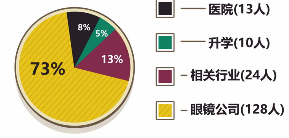 我们的毕业生基本上在眼镜行业从事相关岗位工作,根据不同的方向,就业有所区别: