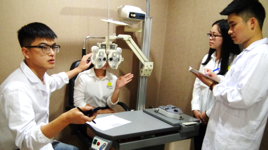 ●我校眼视光技术专业校内实训基地突出教学做一体化,强化学生实践技能训练,营造真实的工作场景。大部分校内实践教学的地点为黎明眼镜店内,实现实践教学与实际工作岗位的无缝对接。现建有共8个校内实践实训室,采用国内先进教学仪器设备,设备总价值约600万元,总共实训室总面积约800㎡。目前合作企业共有16家,包括北京、上海、广州、深圳、杭州、温州等企业。