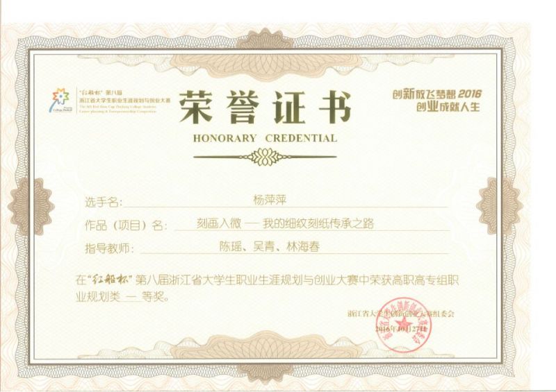 ▲浙江省大学生职业生涯规划大赛规划类一等奖