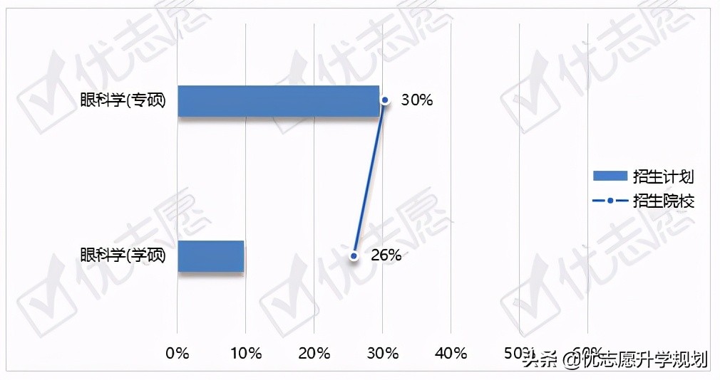 2021年眼科学专业计划招生人数将近1000人,其中眼科学专硕专业的招生计划占比达到66%。