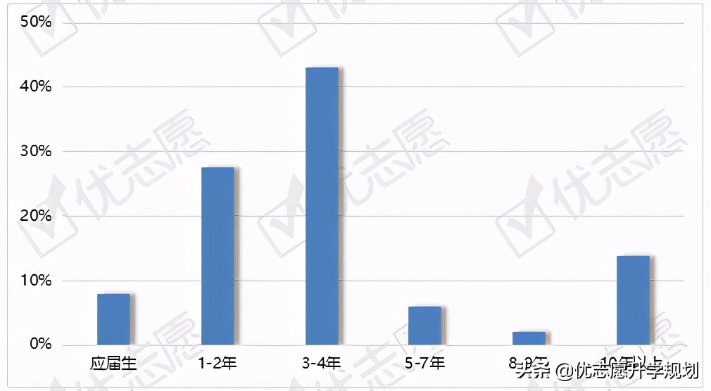 依据前程无忧平台的数据可知,约83%的眼科医生要求应聘者至少为本科学历,面向研究生的岗位超过15%。前程无忧平台发布的眼科医生多是企业需求岗位,企业相对更看重工作经验。
