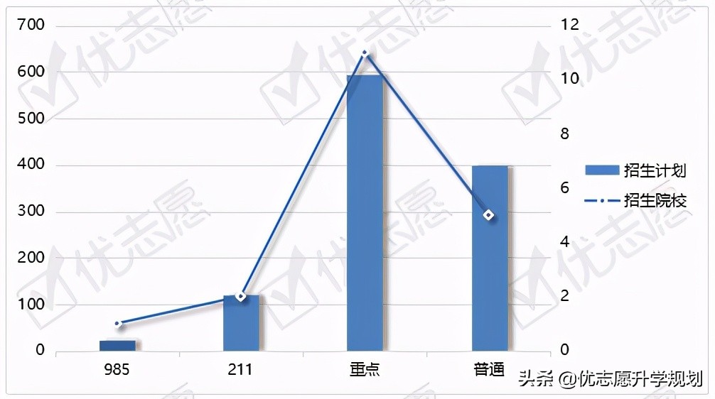 注:1.以上普通批次计划不含专项计划、中外合作、实验班等特殊类型招生;2.211不包括985,重点包括省重点和全国重点。