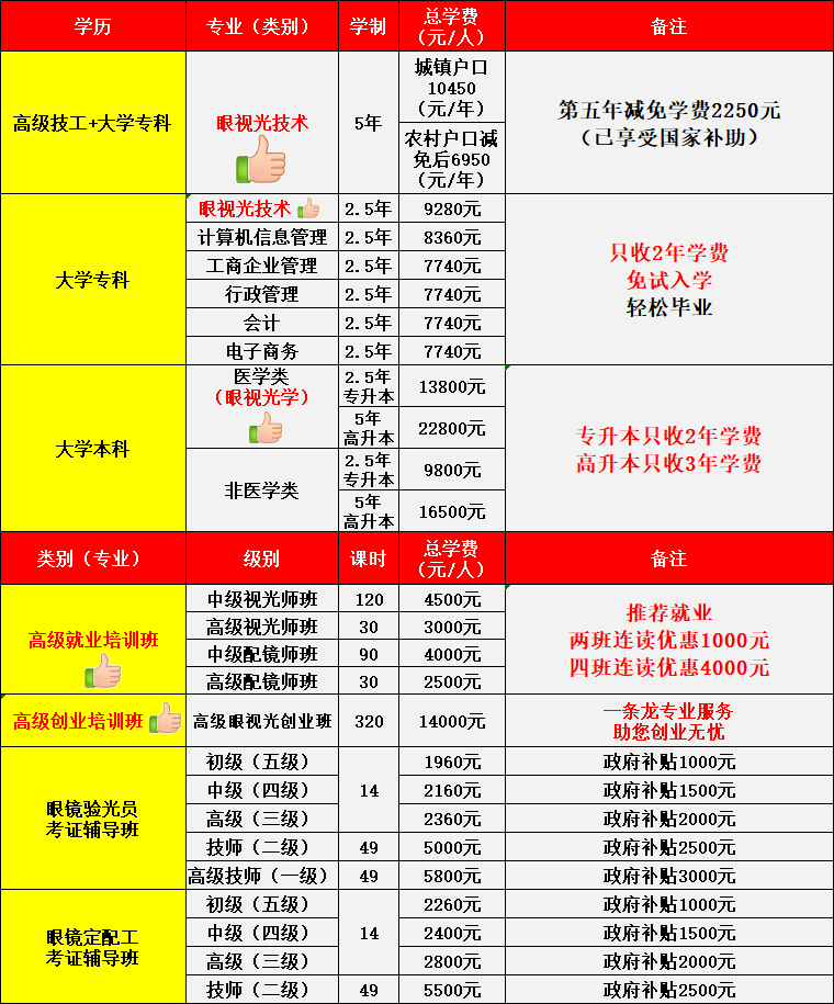 【主要课程】:眼镜门店经营管理实务、眼镜视光创业指导、眼科学、眼镜光学基础、验光技术、角膜接触镜验配技术、眼镜加工技术等。