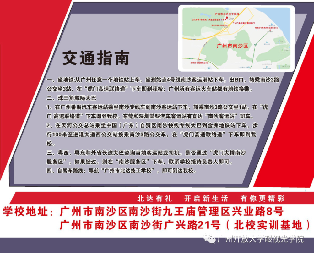 广州市北达技工学校是广东省重点技工学校,隶属广州市人社局管理,全日制住读。学校坐落于广州市南沙城区,倚山临海,环境秀丽。学校针对市场需求,与国家开放大学(广州)眼视光学校联合举办眼视光技术专业,本专业学生在校期间可同时报读相对应的国家开放大学眼视光技术、眼健康服务与管理专业课程,毕业后颁发技工毕业证、国家开放大学专业毕业证,并考取眼镜验光师、眼镜定配工两种职业技能等级证书。