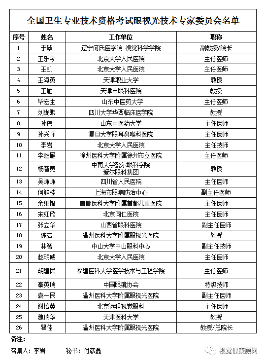 后附:全国卫生专业技术资格考试眼视光技术专家委员会名单