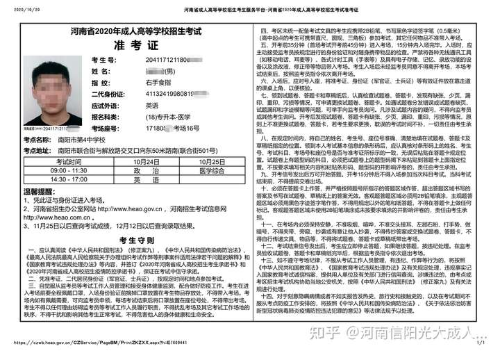 报名方式今年我省成人高招报名实行网上报名。首次将网上报名分考生网上输入报名信息和报名信息现场确认两个阶段进行。在网上输入报名信息阶段,考生访问河南省招生办公室网站,登录河南省成人高校招生考生服务平台了解我省疫情防控要求和成人高校招生政策和规定,查询学校招生的有关情况,按照系统的提示和要求,输入个人信息,选择报考层次、学校、科类、专业、信息确认点和确认时间,上传身份证图片,填报并打印《2021年河南省成人高校招生疫情防控承诺书》,并在网上支付相应的报名考试费和信息采集费,报考艺术类、体育类的考生还需支付专业课加试费。报考对专科学历有要求的考生,实行网上学历审核告知制度,在考生网上报名时进行网上学历审核,并将审核结果实时告知考生。其中对学历审核不通过的二学历考生和免试生,在信息确认时,要告知考生必须到学历管理部门进行学历认证。在报名信息现场确认阶段,考生要按防疫要求全程佩戴口罩,按自己预约的时间和选定的信息确认点,到现场扫健康码、接受体温检测,均为正常的,方可办理信息确认手续。交验有关证件、证明及复印件和自行打印的《2021年河南省成人高校招生疫情防控承诺书》,接受报考资格审查,并进行二代居民身份证信息查验,采集头像信息、指纹信息,签字确认报名信息,签订《2021年河南省成人高校招生考生承诺书》和《2021年河南省成人高校招生疫情防控承诺书》。凡经过网上报名而未进行报名信息确认的考生,网上报名无效。体温检测为异常的,在当地卫生防疫部门的指导评估后,按我省疫情防控要求处理。从境外和中高风险疫区回来的考生、无症状感染者经治愈的考生,必须提供近3天的核酸检测报告,核酸检测报告为阳性的,取消其报考资格。考生报名信息一经确认,不得更改。因填报信息错误而造成的不良后果,由考生本人负责。考生拒绝签订考生诚信考试承诺书、疫情防控承诺书者,不接受其参加成人高校全国统一考试。