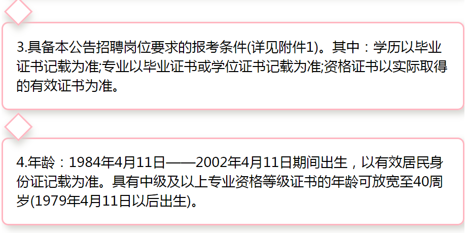 符合本公告及附件1相应岗位条件的人员,报考者必须在报名时出具符合岗位条件要求的国家承认学历的毕业证等证书。
