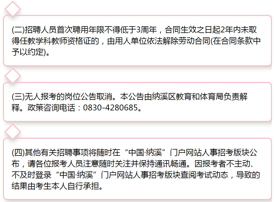 (四) 递补:因体检、考察不合格或个人放弃等原因出现的空额,有递补对象的,由纳溪区教育和体育局与用人单位确定是否递补。