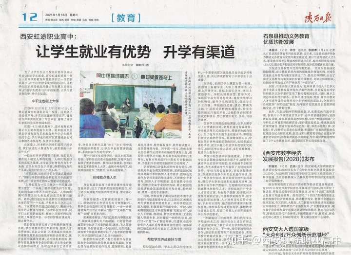权威媒体报道虹途虹途硬核实力造就了不可忽视的江湖地位作为西安教育界的一股新生力量西安虹途学校已被省内多家权威媒体高度关注和持续报道并且多次受到了教育行政部门和社会各界的好评2021年1月13日中共陕西省委机关报《陕西日报》教育头版报道我校