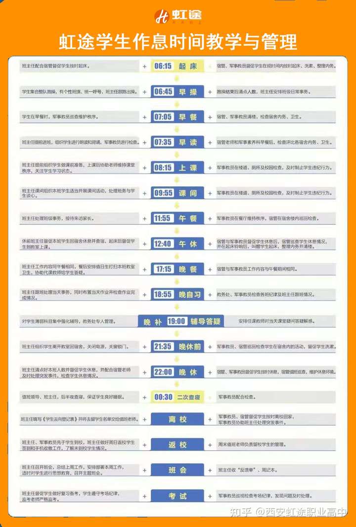 ▲班主任每天全程陪伴学生的学习和生活管理严格,培养习惯,保障安全寄宿制、全封闭准军事化管理西安虹途职业高中为独立全封闭式校园,安全有保障,学生在校期间禁止携带手机等一切电子产品。精细化的时间管理,拒绝懒惰,提高执行力。