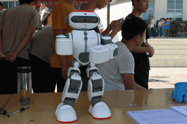 要问时下最火的东西是什么?那无疑就是人工智能机器人了,在游仙职业技术学校工业机器人专业技能展示区域,小仙一眼就看到了一个名叫Dobi的机器人。