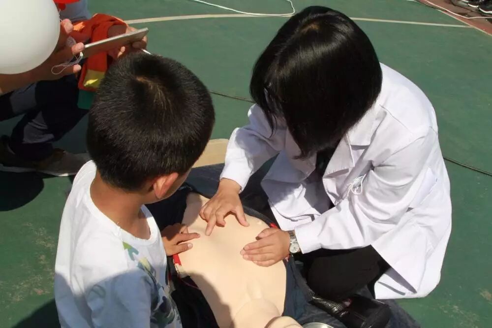 快看那边!一位身穿白大褂的小仙女正在为小朋友讲解心肺复苏操作。这对小朋友来说无疑是新奇的,在她的讲解指导下,小朋友竟然也有模有样地当起了小小急救员。