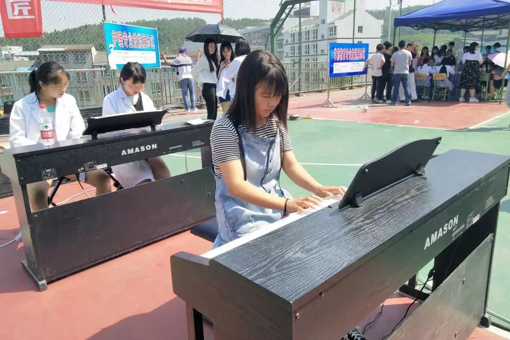 在护理技能展示的隔壁,是游仙职业技术学校幼教专业的钢琴演奏技能展示,小仙女们手指在黑白键上飞舞,美妙的音符就这样跳出来了!