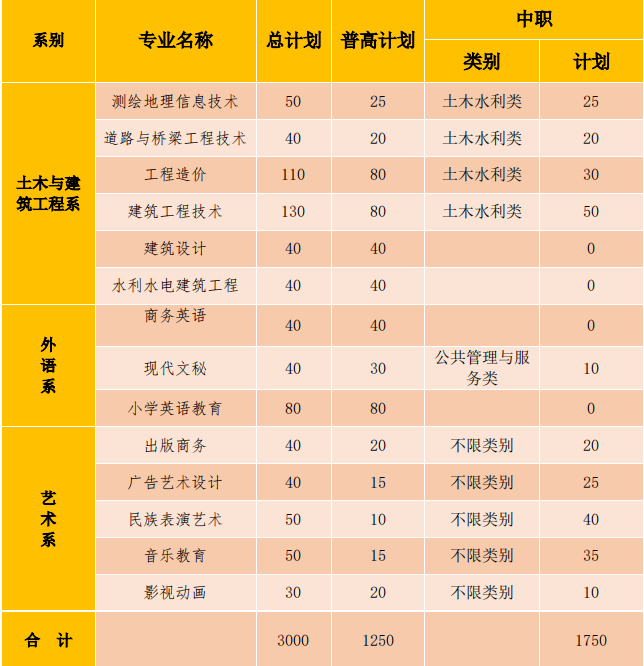 一、招生专业及计划以省教育考试院公布为准。