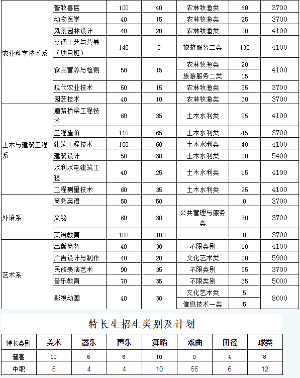 (2)特长类考生可以填报所有报考专业(其中戏曲特长生只能填报民族表演艺术专业)。