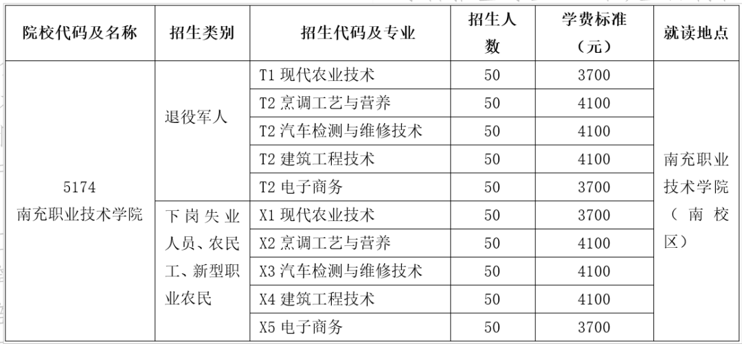 4.具有高级工或技师资格(或相当职业资格)、获得县级劳动模范先进个人称号的退役军人、下岗失业人员、农民工和新型职业农民,经南充职业技术学校审核,报考试院备案审查通过的考生,可免试入学。
