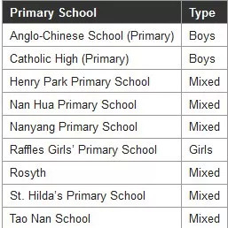 小学分类:名校(一般有GEP课程)和邻里小学。
