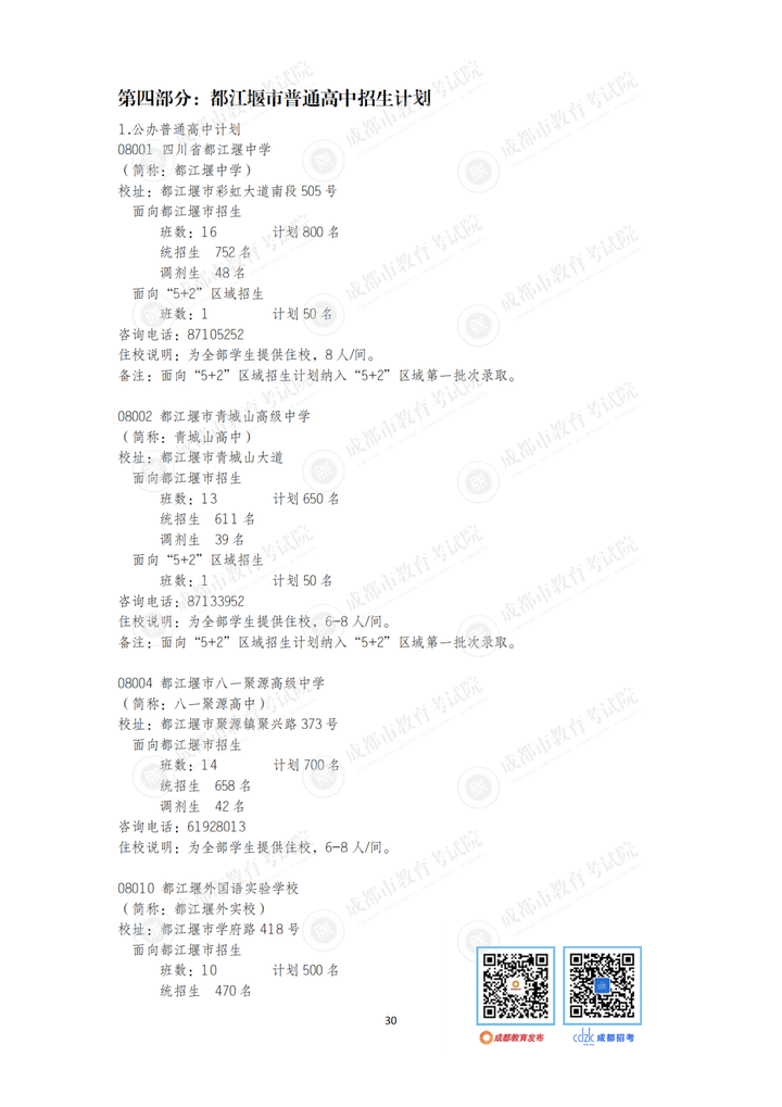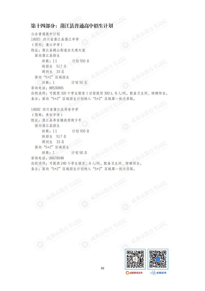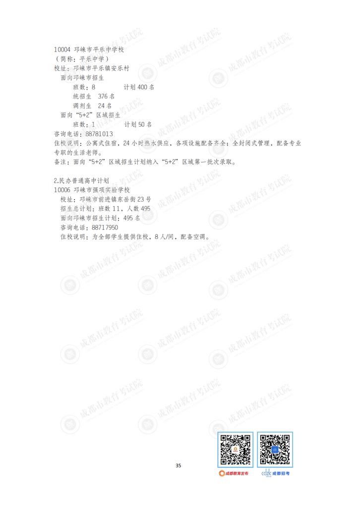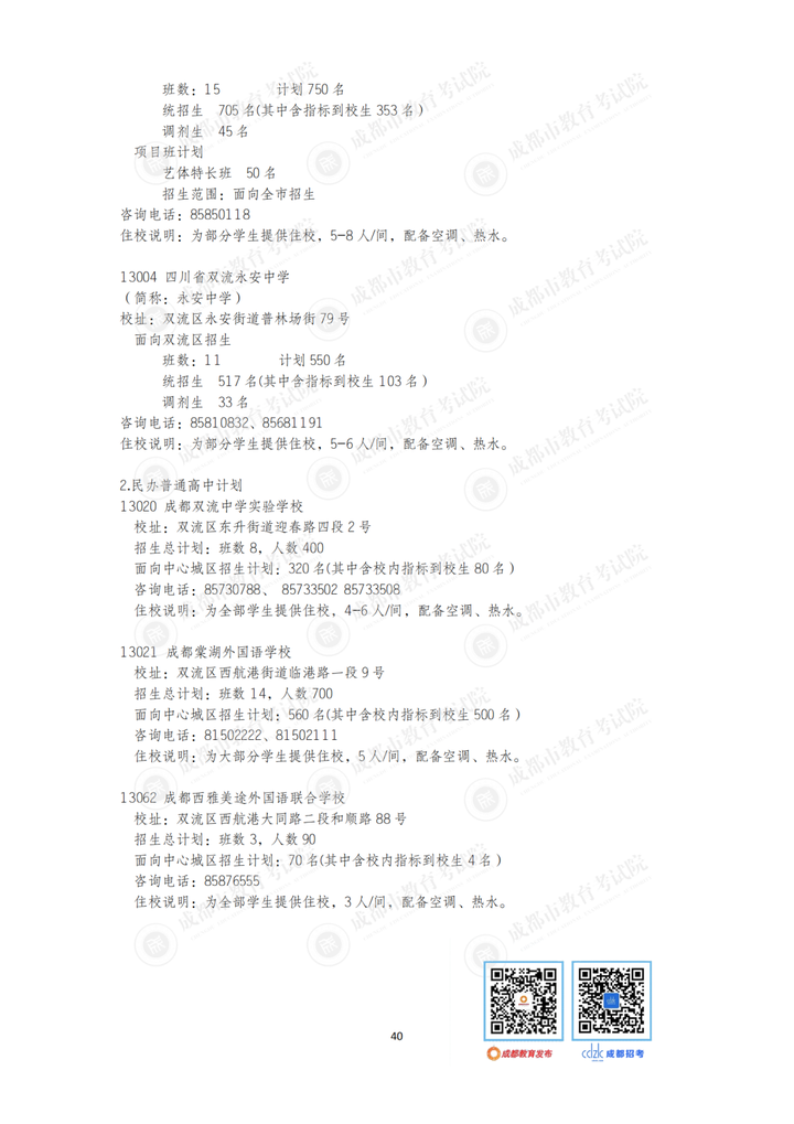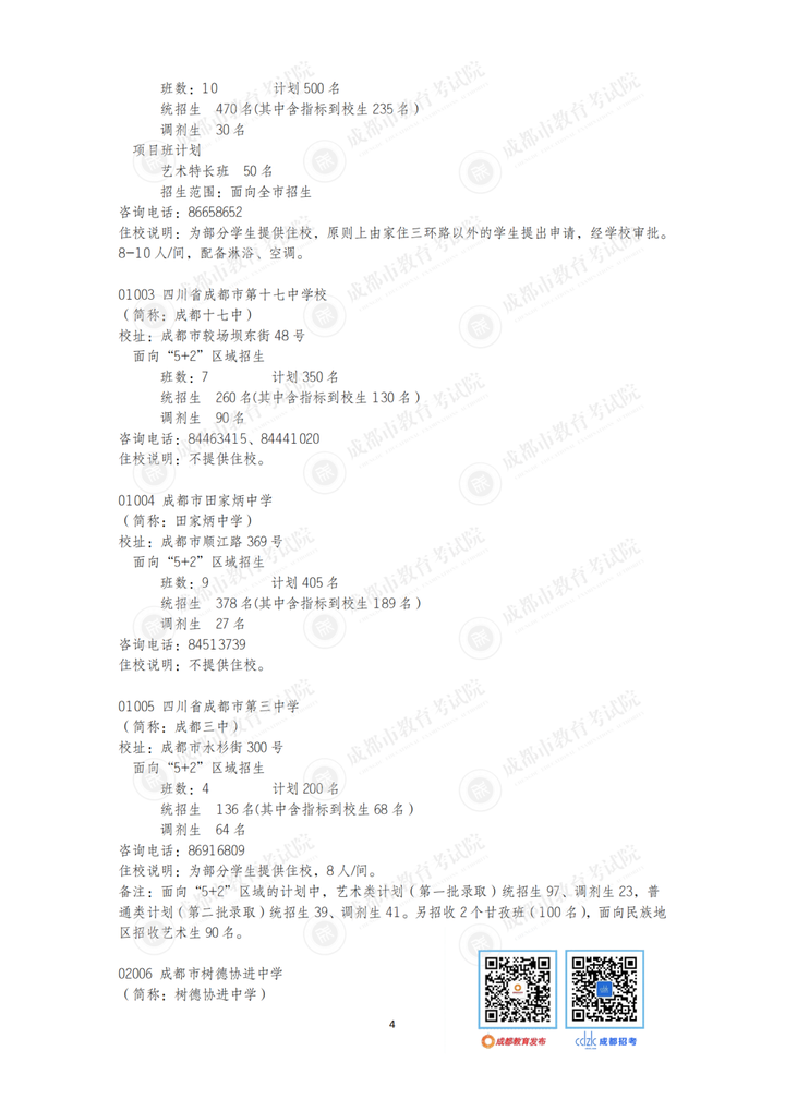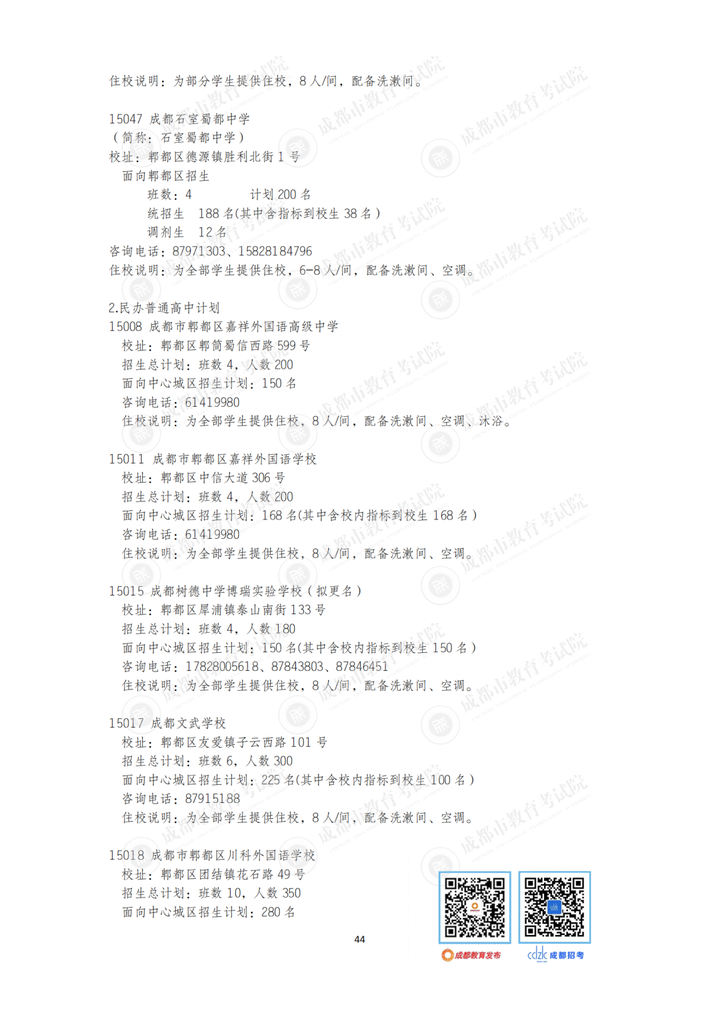 今年,石室中学、成都七中、树德中学等5+2区域的优质高中面向非5+2区域等招收42个班。成都市非5+2区域的优质高中面向5+2区域招收32个班1600人,较2020年增加6个班300人。郊区新城优质高中学校面向5+2区域招生的计划在第一批录取;龙泉驿区、青白江区、新都区、温江区、双流区和郫都区等6个区的优质高中学校面向5+2区域招生的计划在第二批和第四批录取。