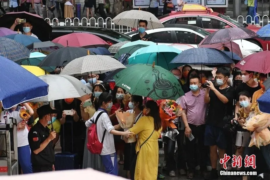 6月9日,广东省广州市第十六中学考点外,家长等待考生结束最后一科考试。中新社记者 陈楚红 摄
