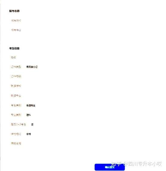 点击去确认后,进入报考志愿、和考生信息界面。