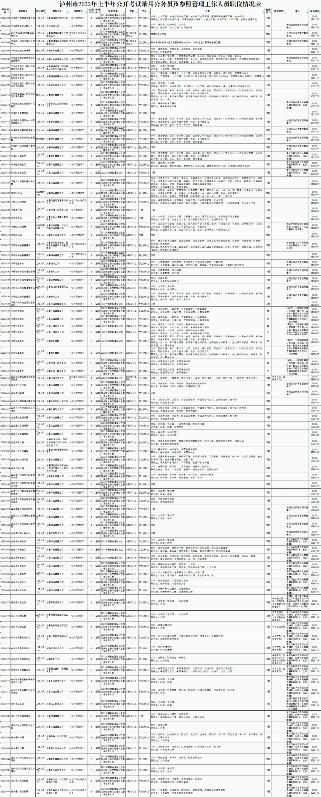 泸州公开考录公务员等工作人员