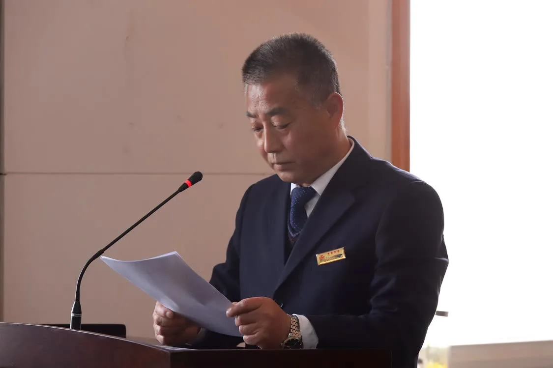 图为常务副校长强勇宣读东运集团平凉交校表彰决定。