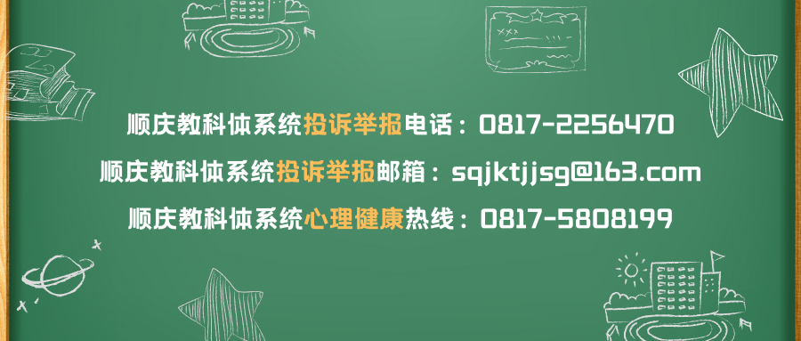 如果需要咨询或反映情况,请致电南充市顺庆区教育科技和体育局职教中心(电话: 0817-2668621 )或区纪委监委驻区教科体局纪检监察组(电话:0817- 2256470 )。