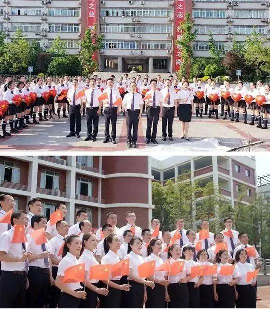 晨曦煌煌,方阵堂堂;师生肃穆,凝眸仰望。