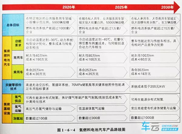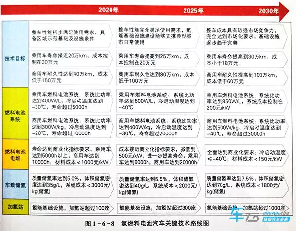 氢燃料电池汽车技术路线以实现氢燃料电池汽车产业化为目标,开展燃料电池系统、燃料电池堆及材料、车载储氢与加氢站等关键产业环节技术与产品攻关、突破核心技术、提高性能并进一步减低成本,建立并完善燃料电池关键技术及产业链,燃料电池乘用车与商用车具有较强市场竞争力并实现全面产业化。
