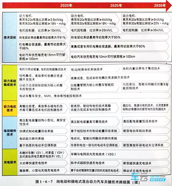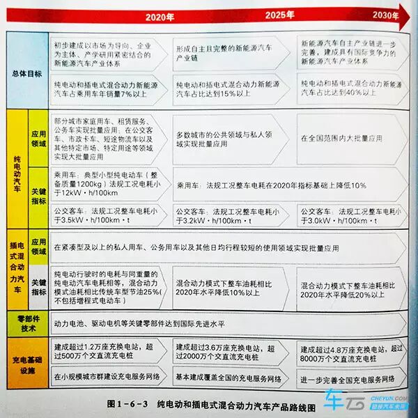 纯电动和插电式混合动力汽车技术路线重点在于:为了实现纯电动汽车和插电式混合动力汽车的大批量市场推广,形成完善的整车、关键总成生产体系和社会生态环境;以降低整车成本、提升整车技术先进性为目标、突破先进驱动电机和动力电池等关键零部件开发技术,加快充电设备技术研究以充电基础设施推广普及。
