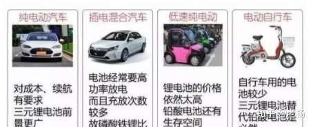 但是我们更关心的是动力电池,也是就新能源汽车中的能量来源,目前动力电池中,镍氢电池面临淘汰,铅酸电池全凭保有量在支撑,故目前以锂电池最为主要。(如下图)