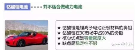 数码电子产品对锂电池安全性要求不高,钴酸锂电池最合适3C领域,特斯拉敢于使用此类电池也是未来得到超强的续航能力,但是同时其安全性能要打些折扣。