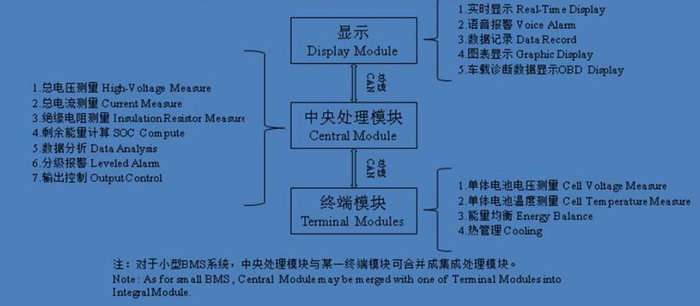 电池管理系统(BATTERY MANAGEMENT SYSTEM,BMS),俗称电池保姆或电池管家,是连接车载动力电池和电动汽车的重要纽带,集电池或电池组的监测和管理于一体,主要功能就是为了能够提高电池的利用率,防止电池出现过度充电和过度放电,延长电池的使用寿命,监控电池的状态。主要有三大功能模块:显示模块、中央处理模块、终端模块。