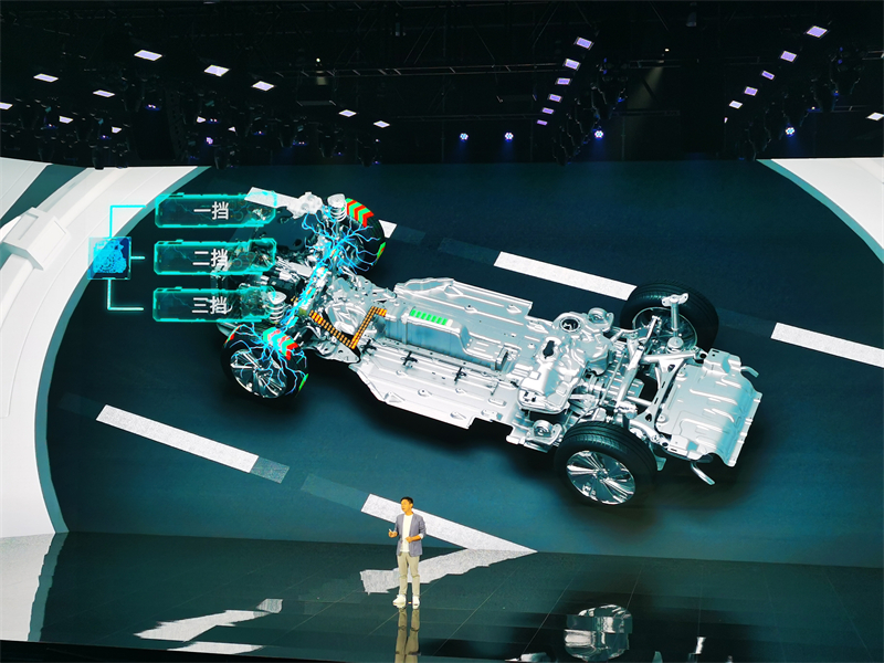 特别需要说明的是,雷神智擎Hi·X可以实现全速域并联。例如,在时速20km/h以上即可进入并联模式,实现弹射起步,远低于日系车混动至少70km/h的并联车速,系统效率提高20%。在提升动力方面,起步时,3挡DHT Pro通过离合器滑摩,匹配1挡大速比,实现弹射起步,起步加速能力提升50%。80~120km/h 加速,释放60%的储备功率,快速实现高速超车。