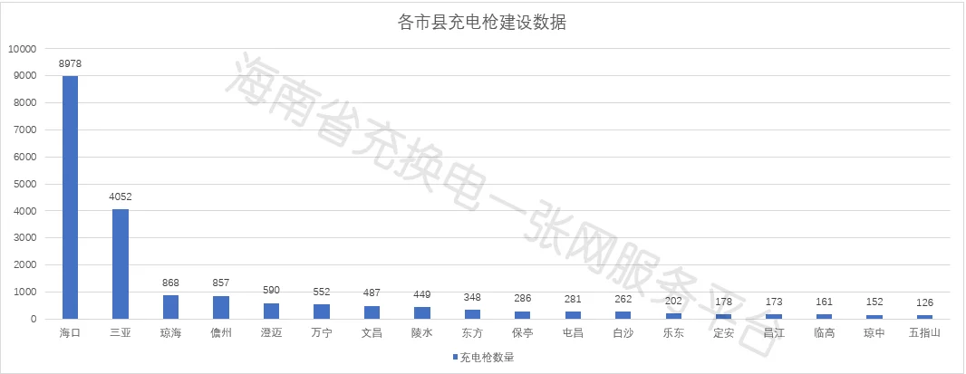 各市县充电枪建设也在加快推进,海口、三亚两地仍大幅领先。截至5月底,海口约占全省充电枪建设数量的47.25%,海口、三亚、琼海、儋州、澄迈的充电枪数量分列全省前五。