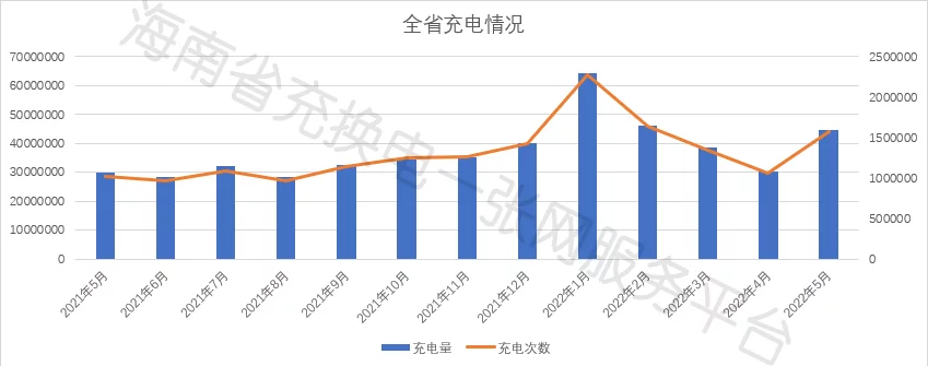 在充电基础设施建设方面,截至2022年5月底,海南充换电省级平台已接入了充电设施运营商85家、1741座充电站、13406个充电桩(其中直流桩6515个,交流桩6890个,交直流一体桩1个)、19002个充电枪,建设总功率约89.11万千瓦。已接入9家换电设施运营企业、40座换电站。2022年5月新增接入运营商3家、38座充电站、328个充电桩(其中直流桩179个,交流桩149个)、492个充电枪,建设总功率约4.89万千瓦。