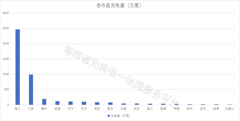 当前海南省充电主要集中在海口和三亚,5月单月,海口、三亚充电量约占全省充电量的77.54%。儋州、琼海、万宁、东方、澄迈、陵水、文昌、乐东,这8个市县约占全省充电量的18.04%,其余市县充电量较小,总计197.58万度,占全省充电量的4.42%。