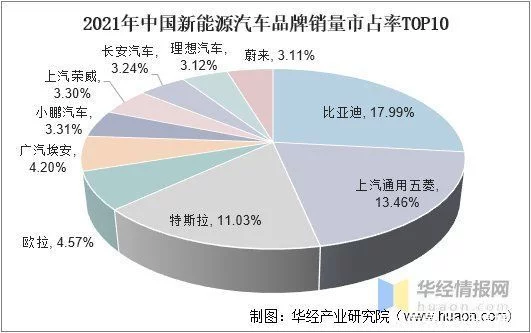 2021年中国新能源汽车品牌销量市占率TOP10