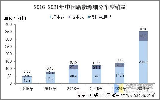 2016-2021年中国新能源细分车型销量