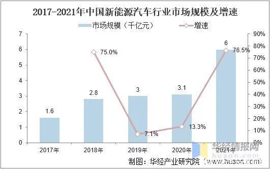 2017-2021年中国新能源汽车行业市场规模及增速