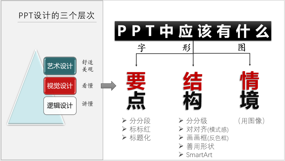 (王珏老师简评:下页是上页用PPT的SmartArt功能,一键生成的,再加上标标红,既养眼、易读、同时能让人一下子抓住重点)