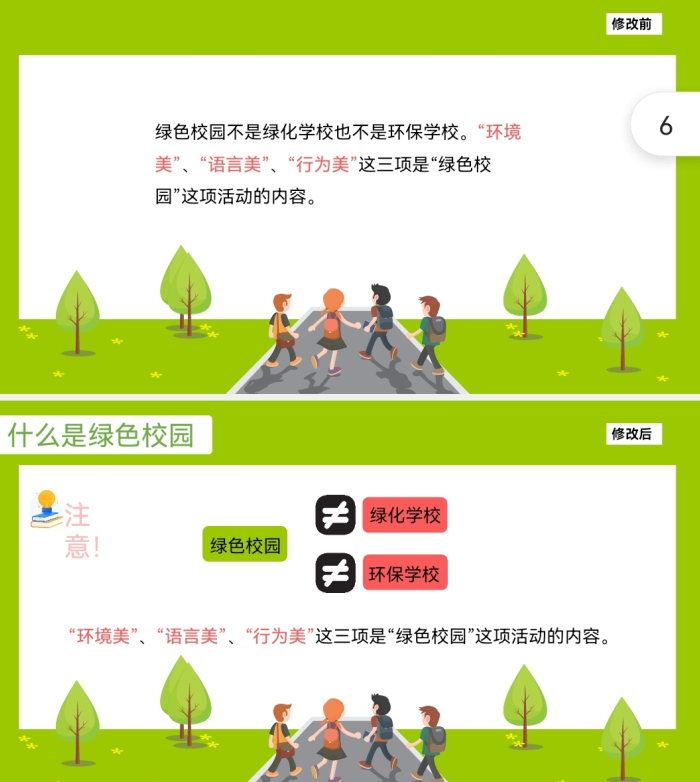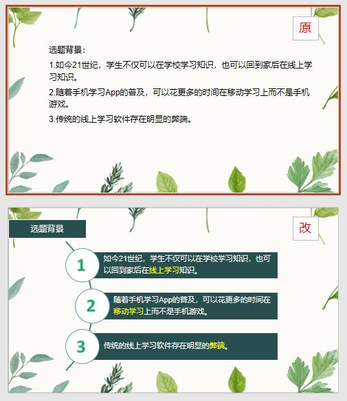 (王珏老师简评:第一句话的修改,是文本型思维转换为视觉化思维的典型!易读、易懂、印象深、视觉效果也好)