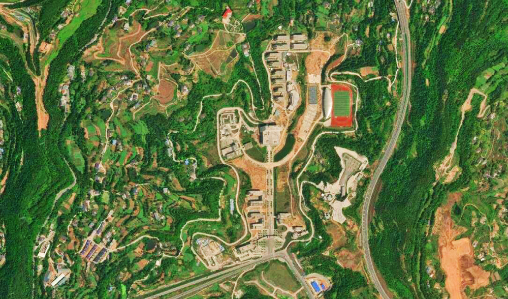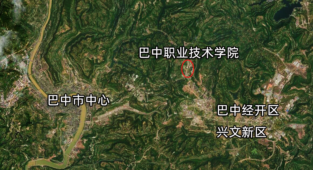 除了在建的大学外,四川省巴中市目前仅有一所大学,它就是巴中职业技术学校。那么从卫星影像的角度,这座高校是怎样的模样呢?