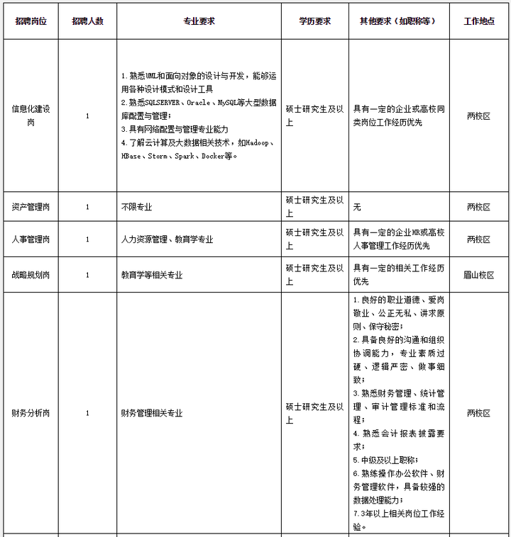 4.能够适应跨校区工作(成都、眉山),部分岗位需常驻眉山校区。