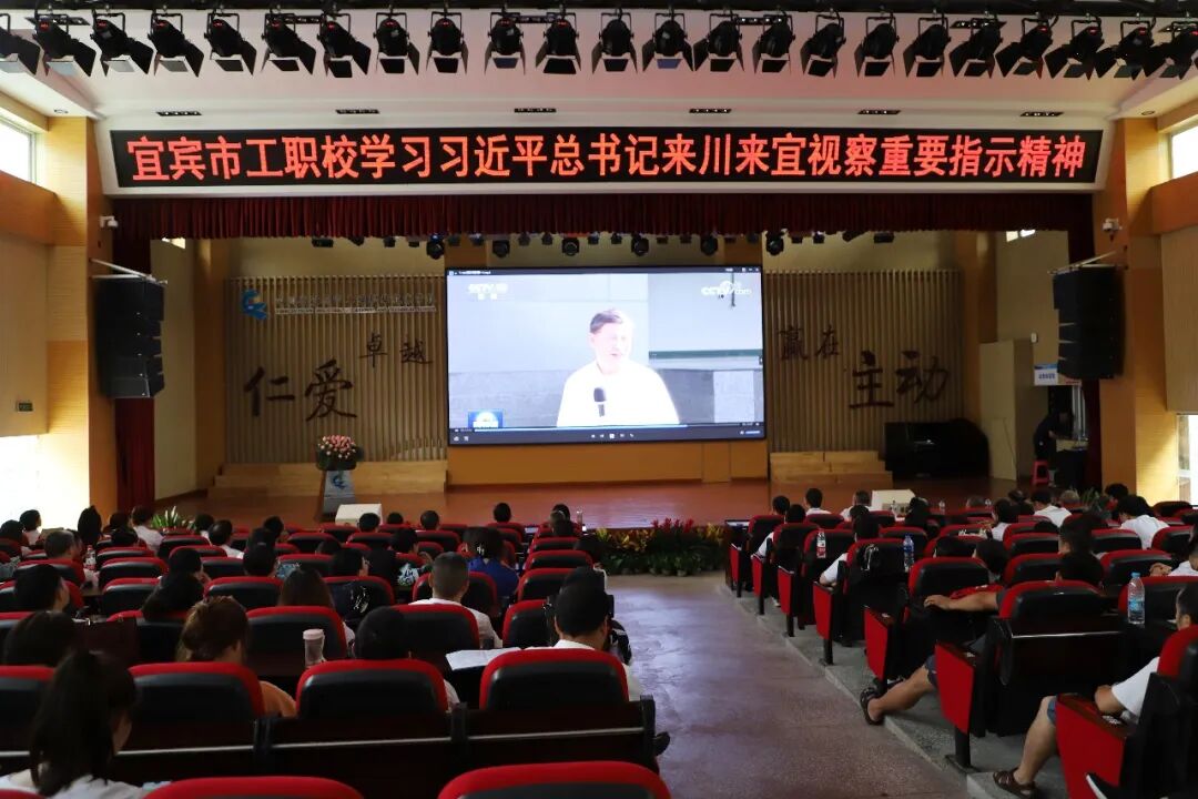 为庆祝中国共产党成立101周年,喜迎党的二十大胜利召开,赓续党的红色血脉,弘扬党的优良传统,进一步激发全体党员教师坚定理想信念,7月1日下午,宜宾市工职校在学术报告厅举行了讲好党史故事、传承红色基因微党课比赛暨七一表彰大会。大会初始,全校教职工集中观看视频,学习习近平总书记来川来宜视察重要指示精神。