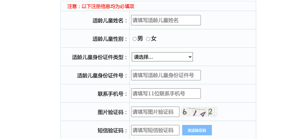 采用居民身份证注册,将通过身份证号提取出生日期,适龄儿童年龄不符合入学要求的,将提示不允许注册。非中国大陆居民如果采用其他证件注册,第一次登录必须填写适龄儿童性别和出生日期,未通过校验的将无法进行后续步骤。