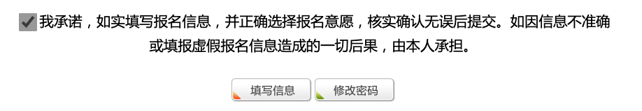 3.再次核对本人勾选报名的学校是否正确,核对正确后在承诺文字前打钩。否则无法进行下一步操作。