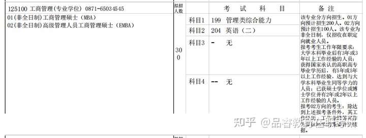 工商管理、公共管理、会计、旅游管理、图书情报、工程管理、审计等专业学位硕士初试科目设置两个单元:管理类综合能力(200分)、外国语(100分);